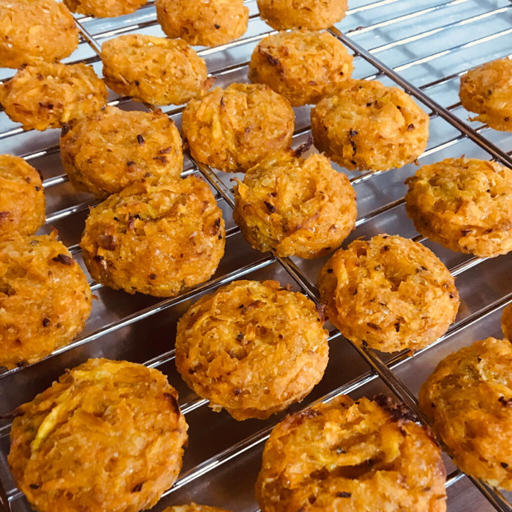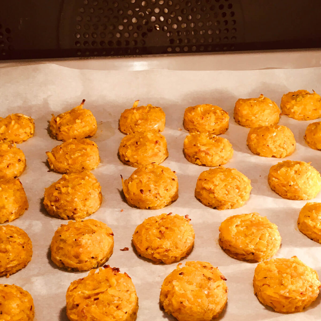 - Die Kürbistaler im Backofen mit Umluft und 180° ca. 20 min backen.