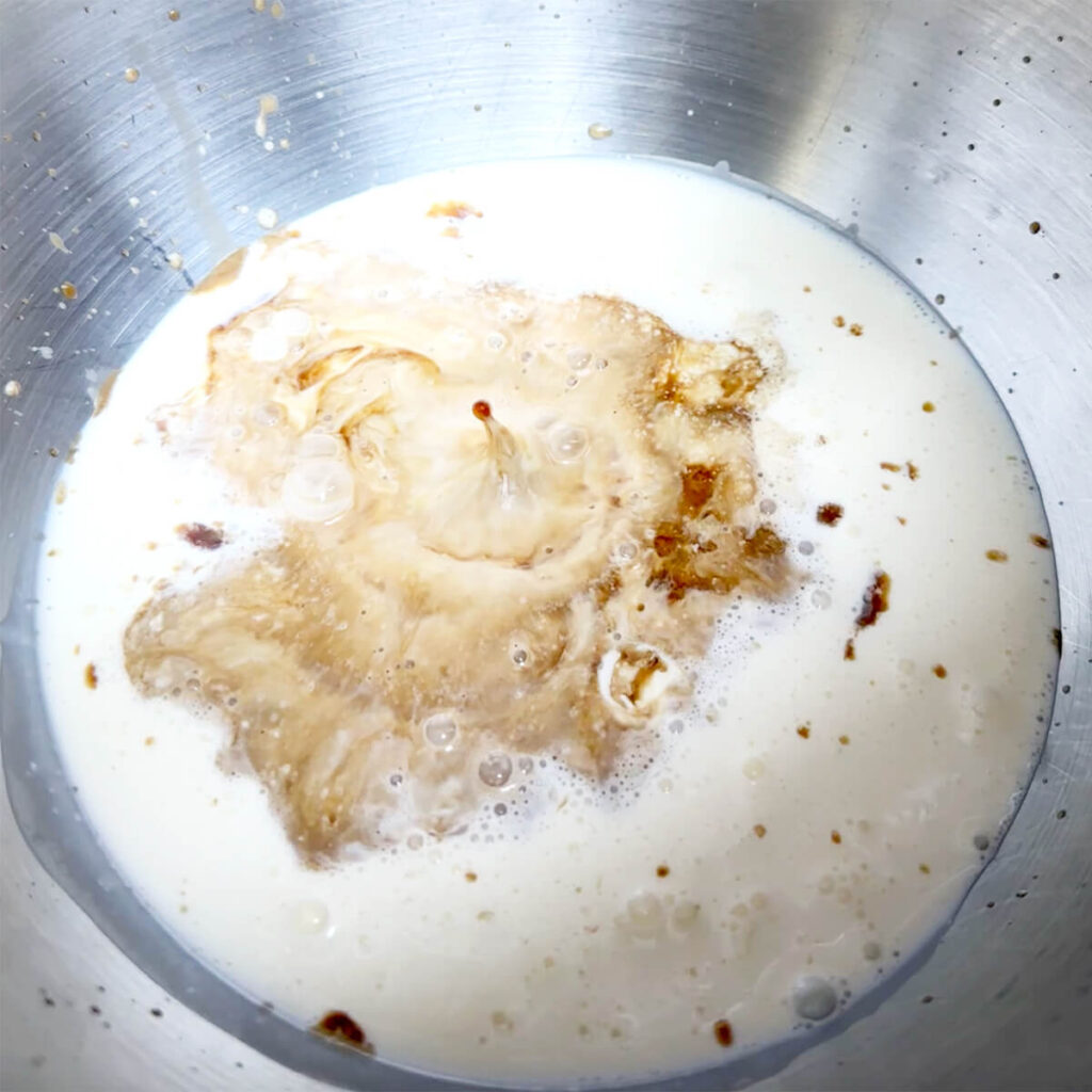 2. Nescafé dem Rahm beigeben, steif schlagen, anschliessend Kirsch beigeben.