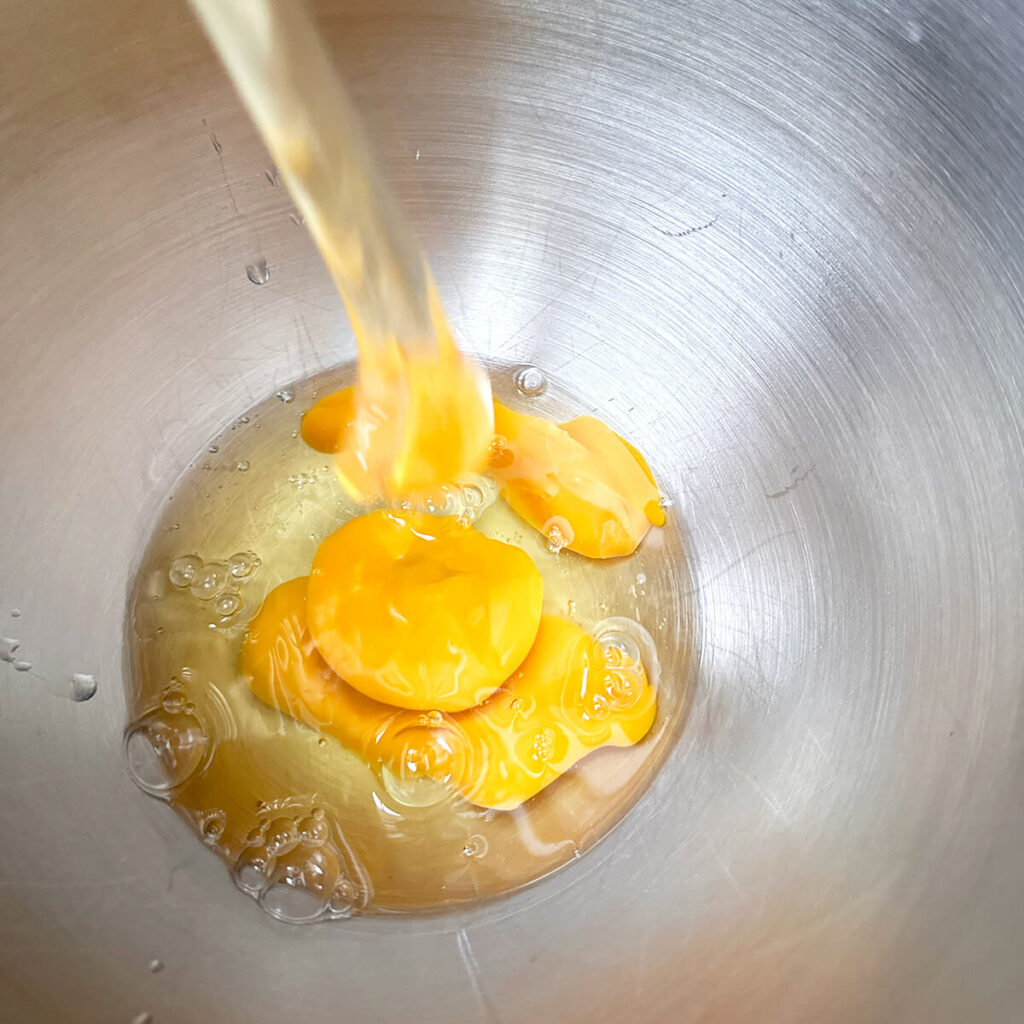 3. Rahm sorgfältig unter die Eierschaummasse ziehen.