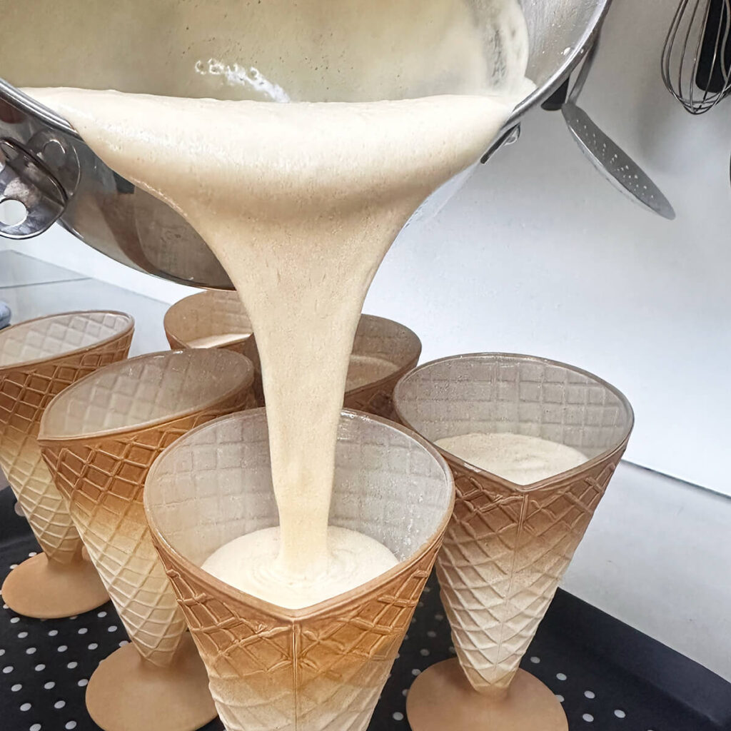 4. Masse in vorgekühlte Kaffeegläser füllen und in den Gefrierer stellen.