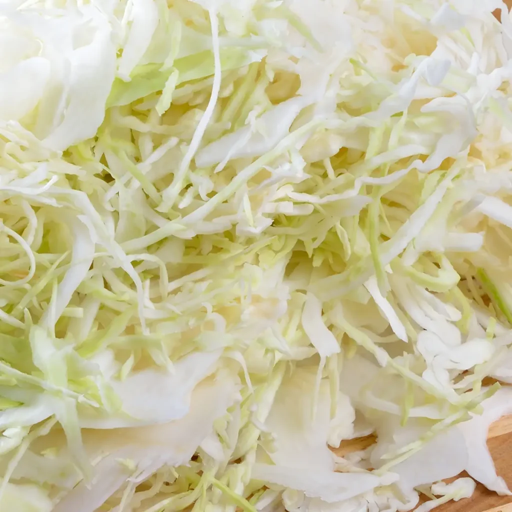 • Den Kohl halbieren oder vierteln und den Strunk entfernen. Anschliessend in dünne Streifen schneiden oder hobeln.